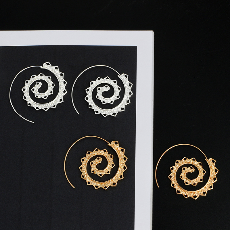 New Oval Spiral Earrings Exaggerated Swirl Gear Heart Shape Vintage Ear Jewelry