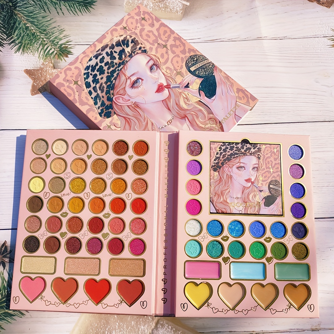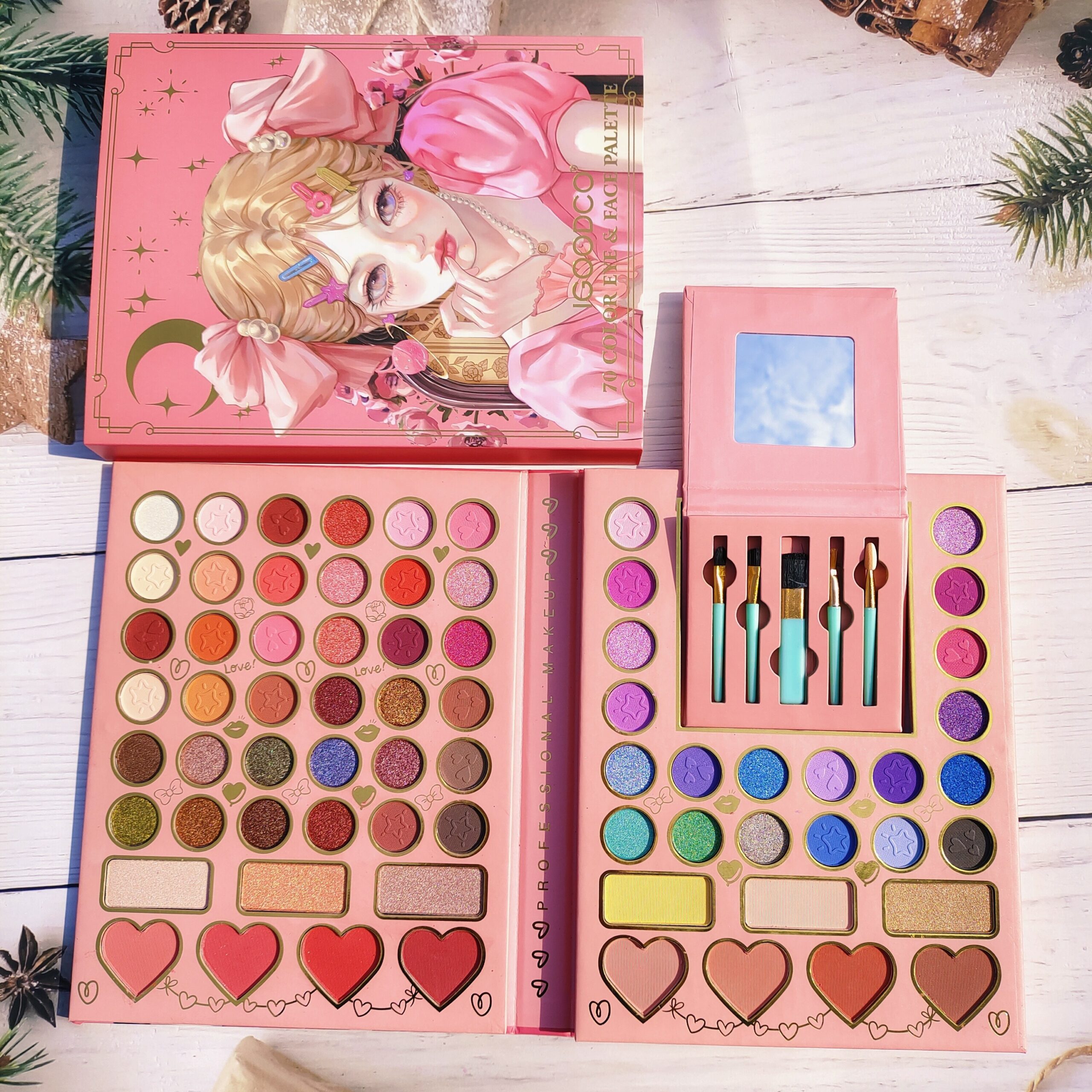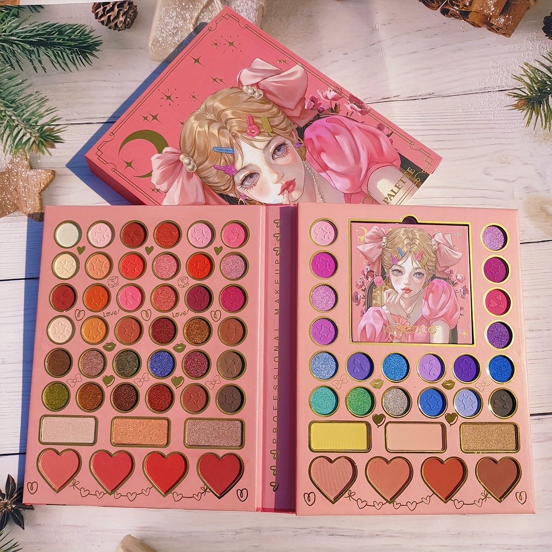 (plant squalane) Cartoon 70 color makeup eye shadow plate high gloss powder blusher lipstick Women’s makeup eye shadow easy color pearl matt with brush palette to send mother and family gifts