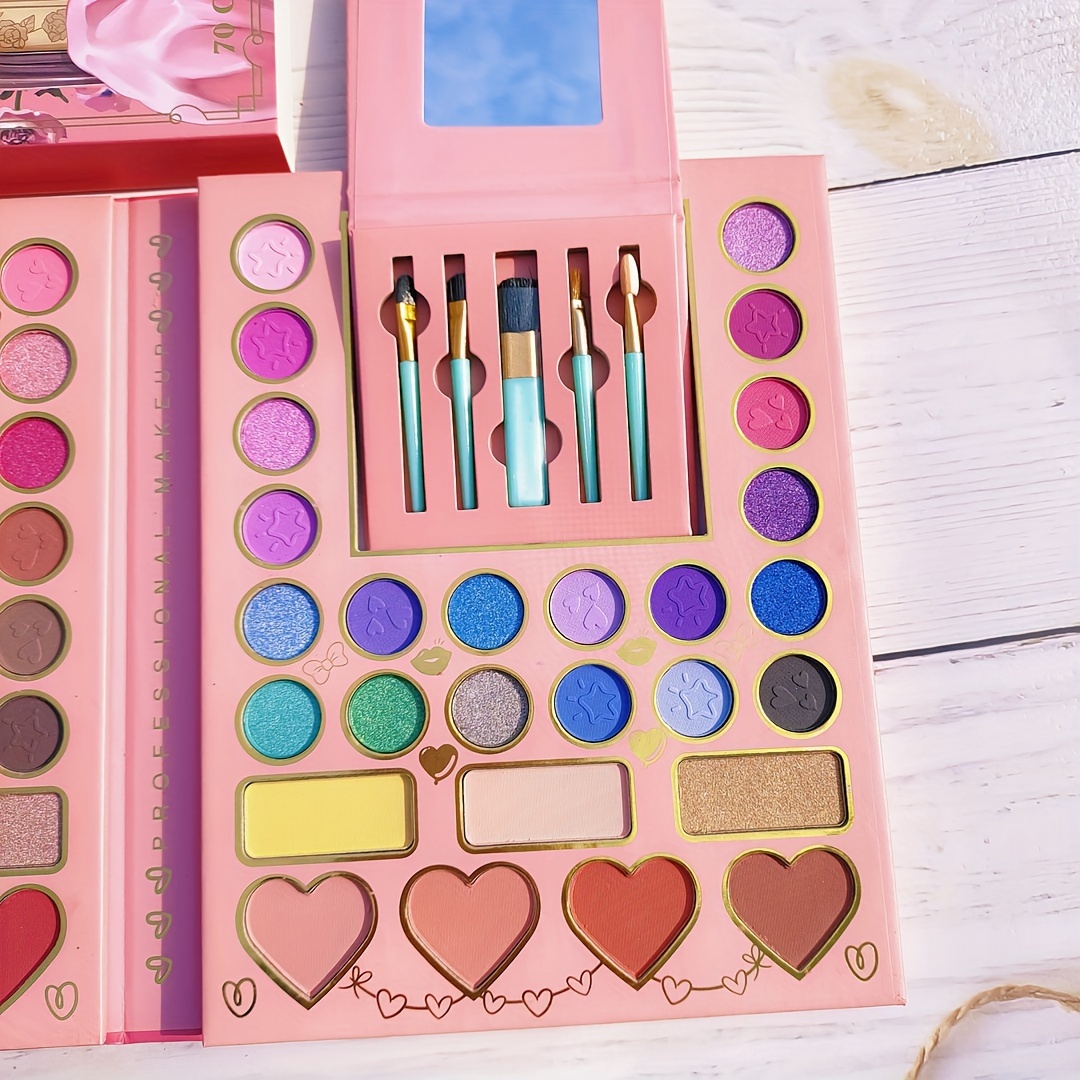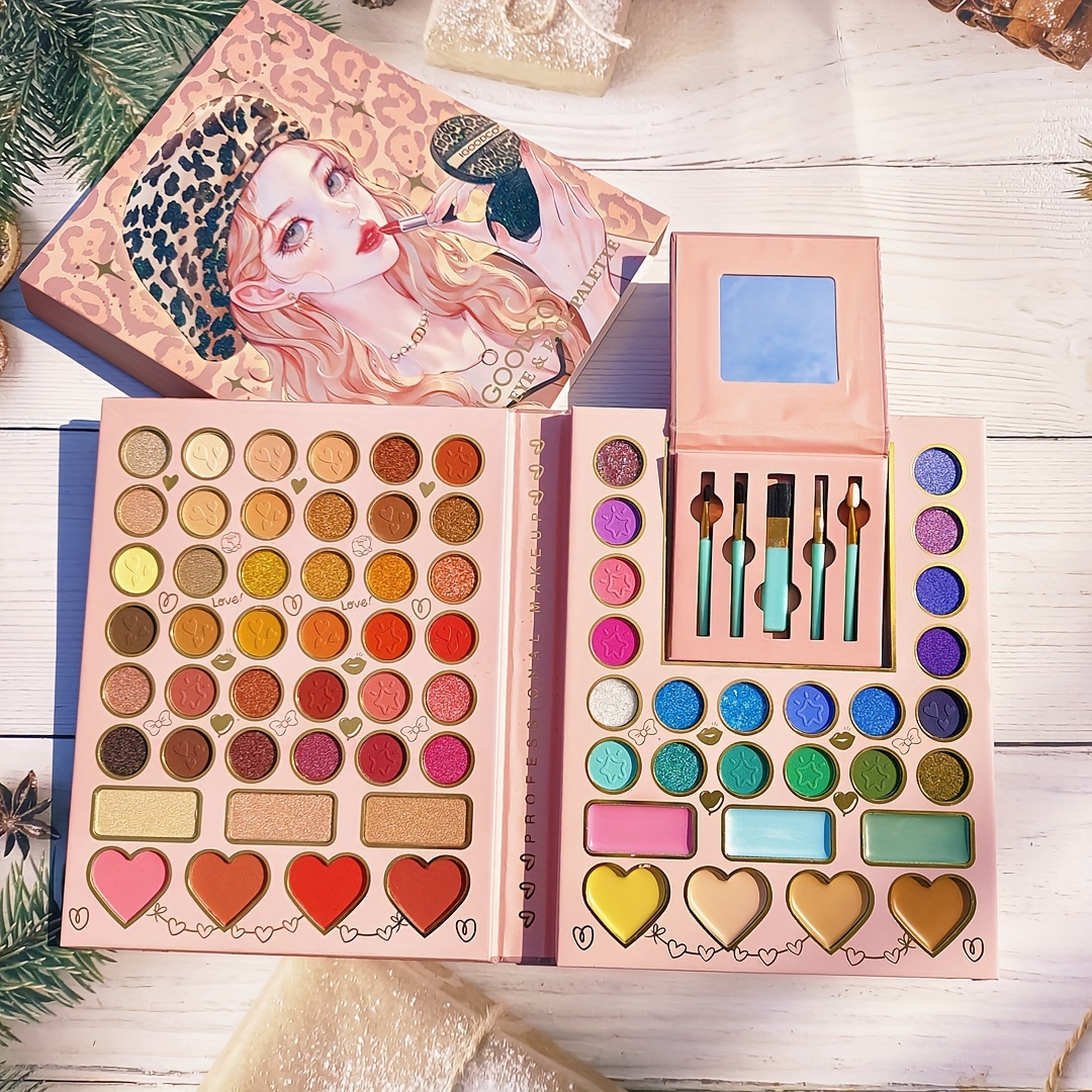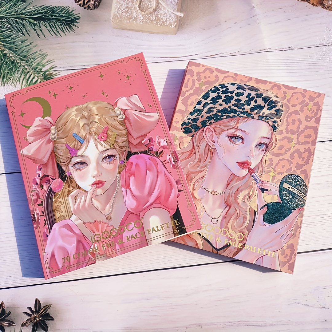 (plant squalane) Cartoon 70 color makeup eye shadow plate high gloss powder blusher lipstick Women’s makeup eye shadow easy color pearl matt with brush palette to send mother and family gifts