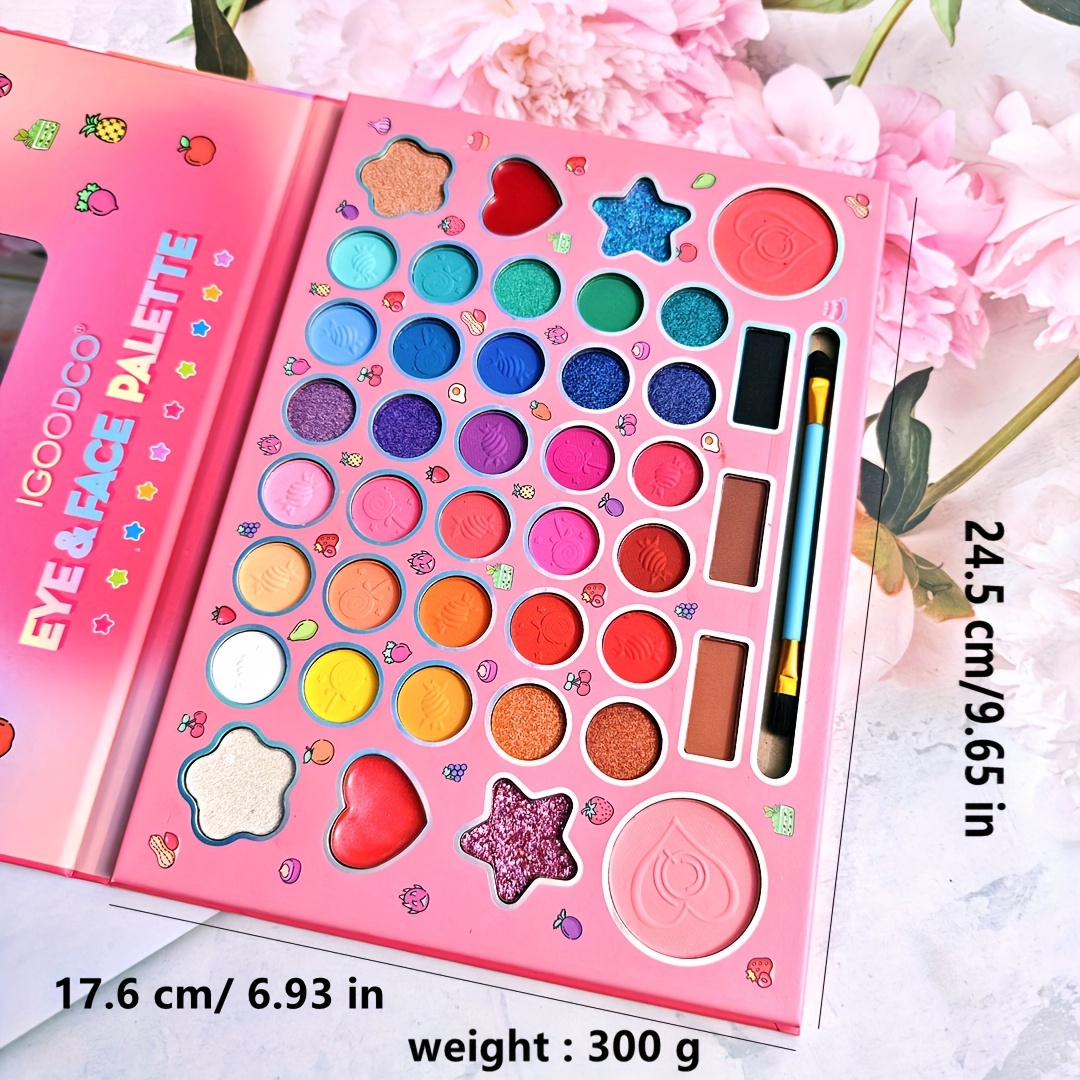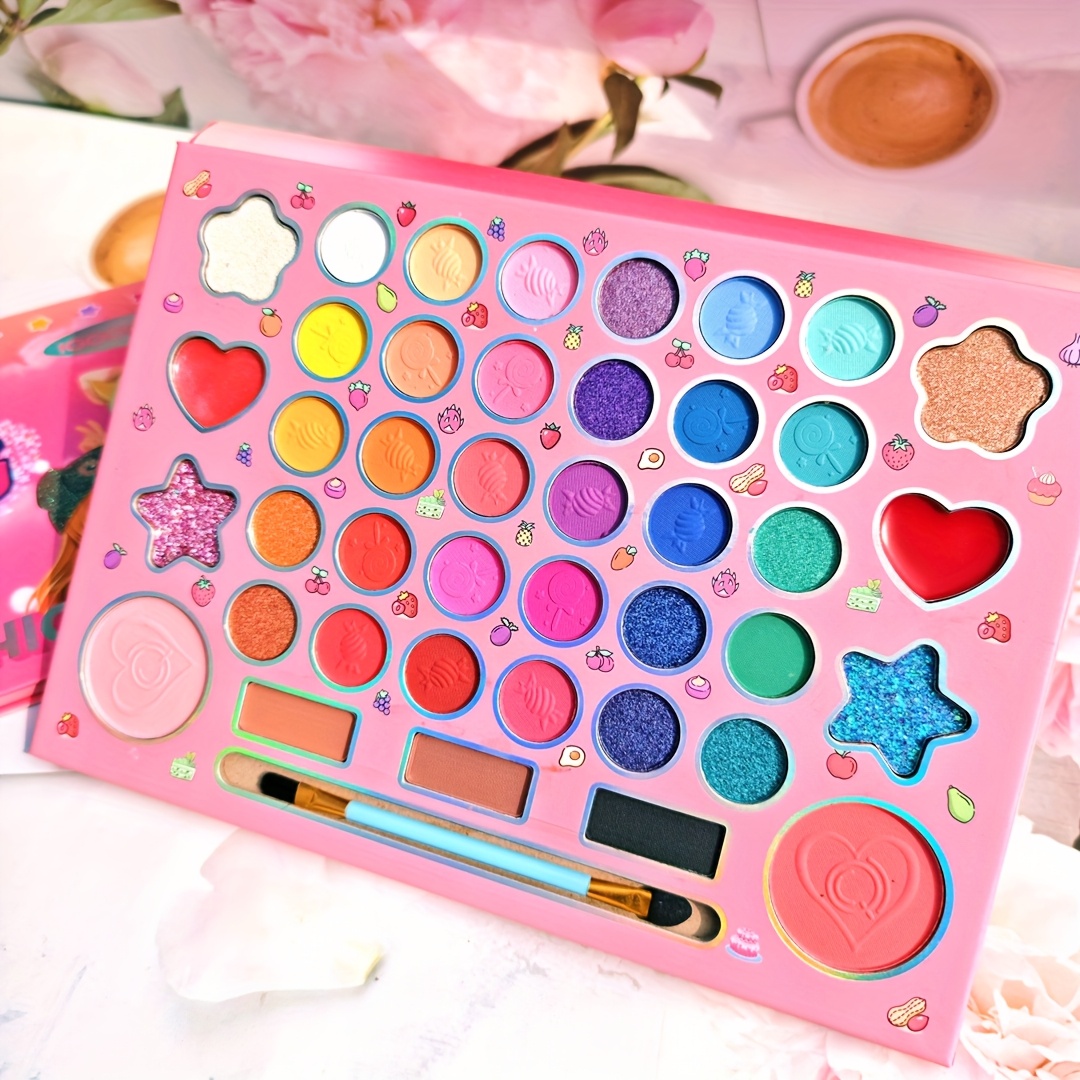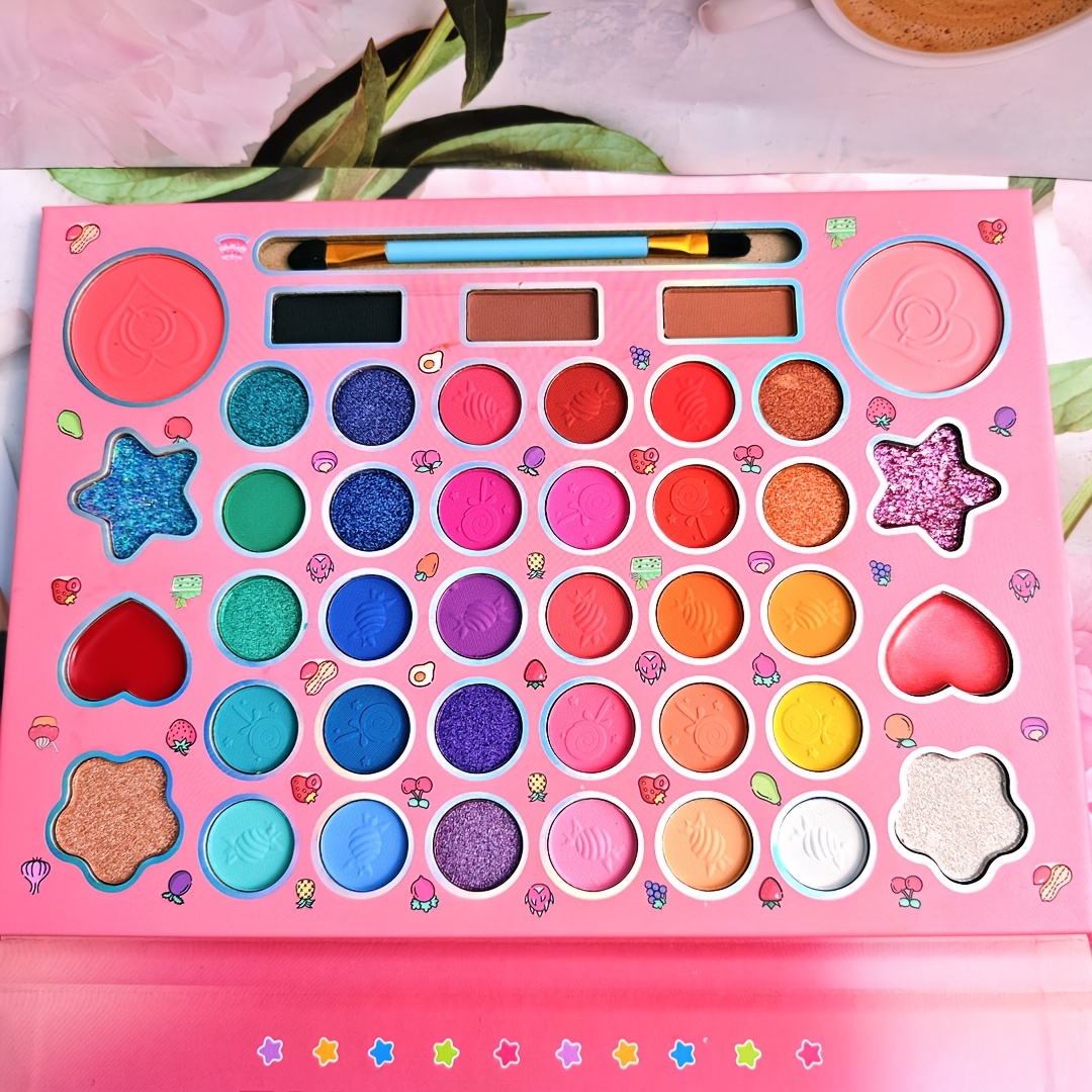 (Plant squalane) Fashionable 41 color cartoon girls’ makeup eye shadow plate pearlescent matte high gloss powder blusher Women’s festival party face repair palette for girlfriend Christmas gift