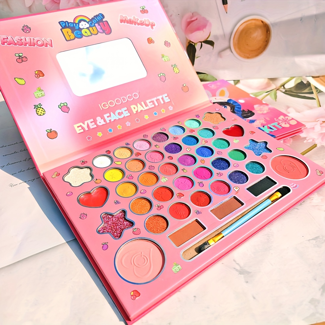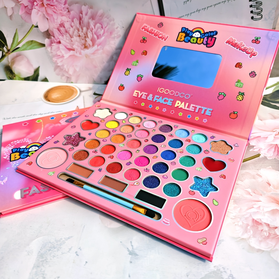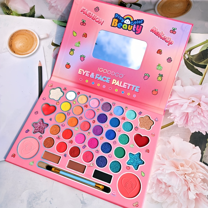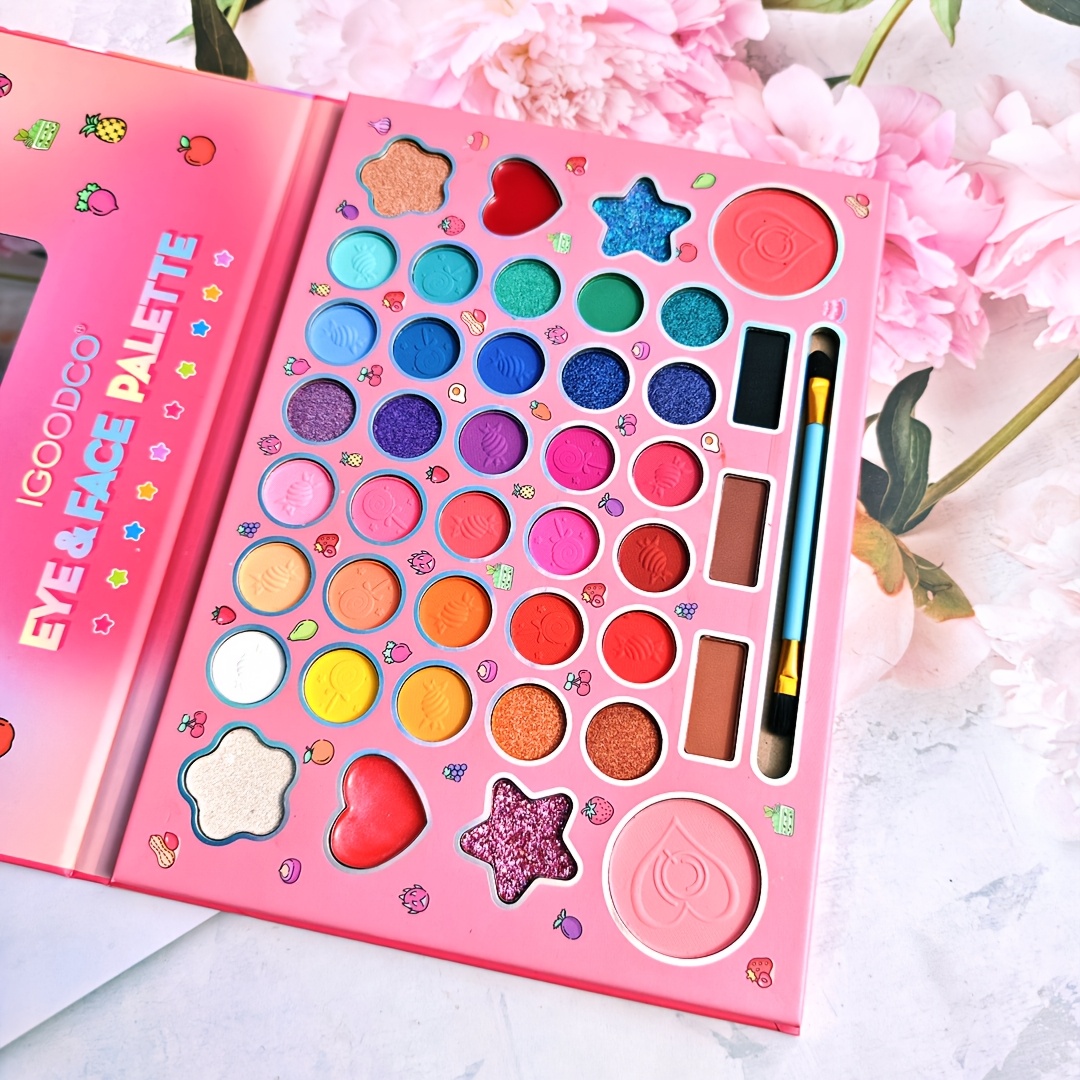 (Plant squalane) Fashionable 41 color cartoon girls’ makeup eye shadow plate pearlescent matte high gloss powder blusher Women’s festival party face repair palette for girlfriend Christmas gift