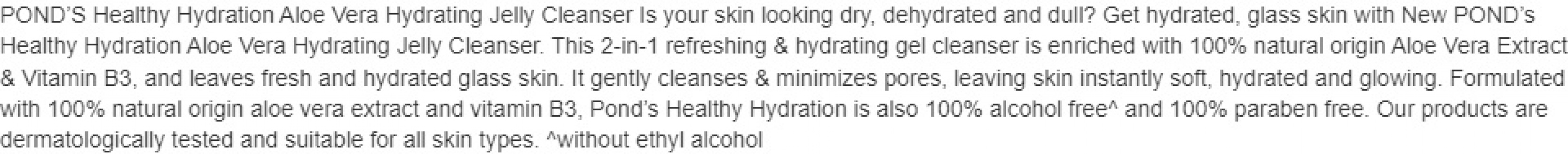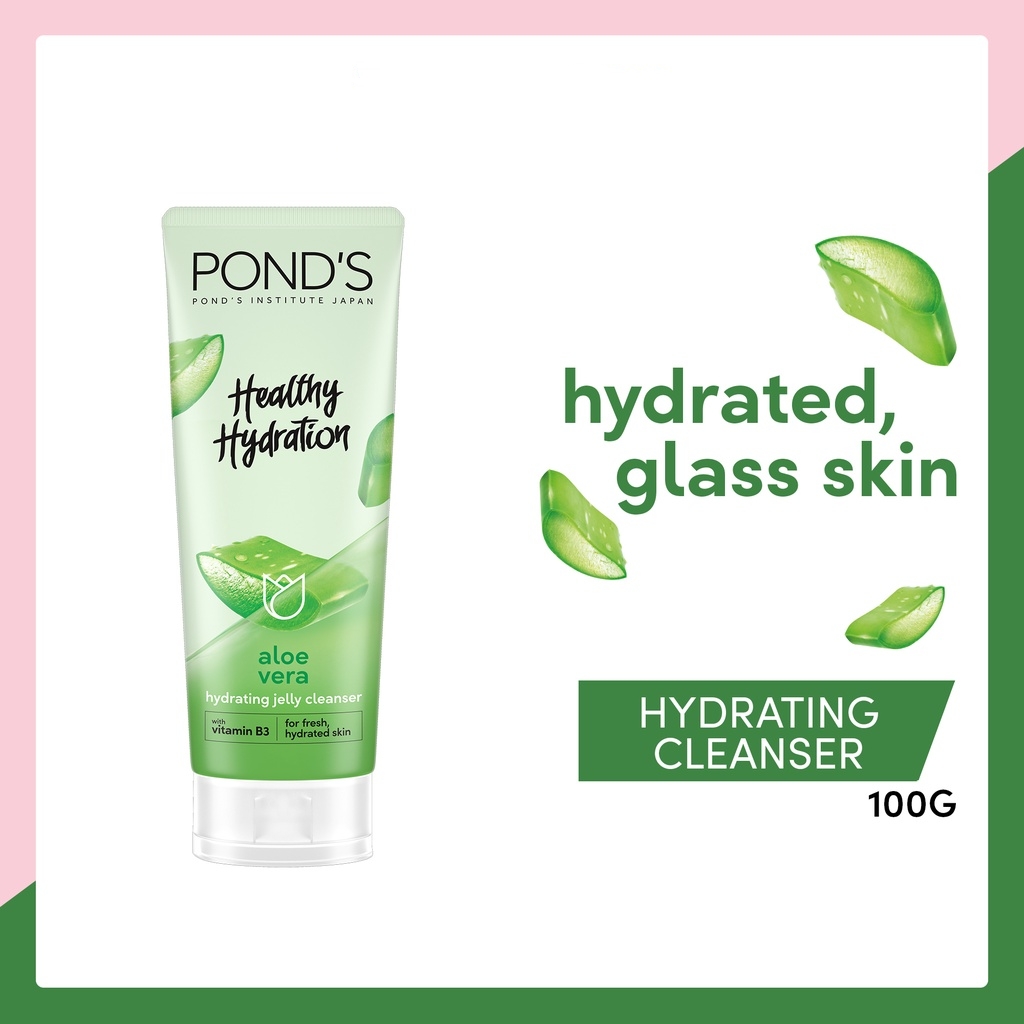 • Pond’s Aloe Vera Jelly Hydrating Cleanser and Facial Wash for Hydrated Skin with 100% Natural Origin Aloe Vera Extract and Vitamin B3 100g