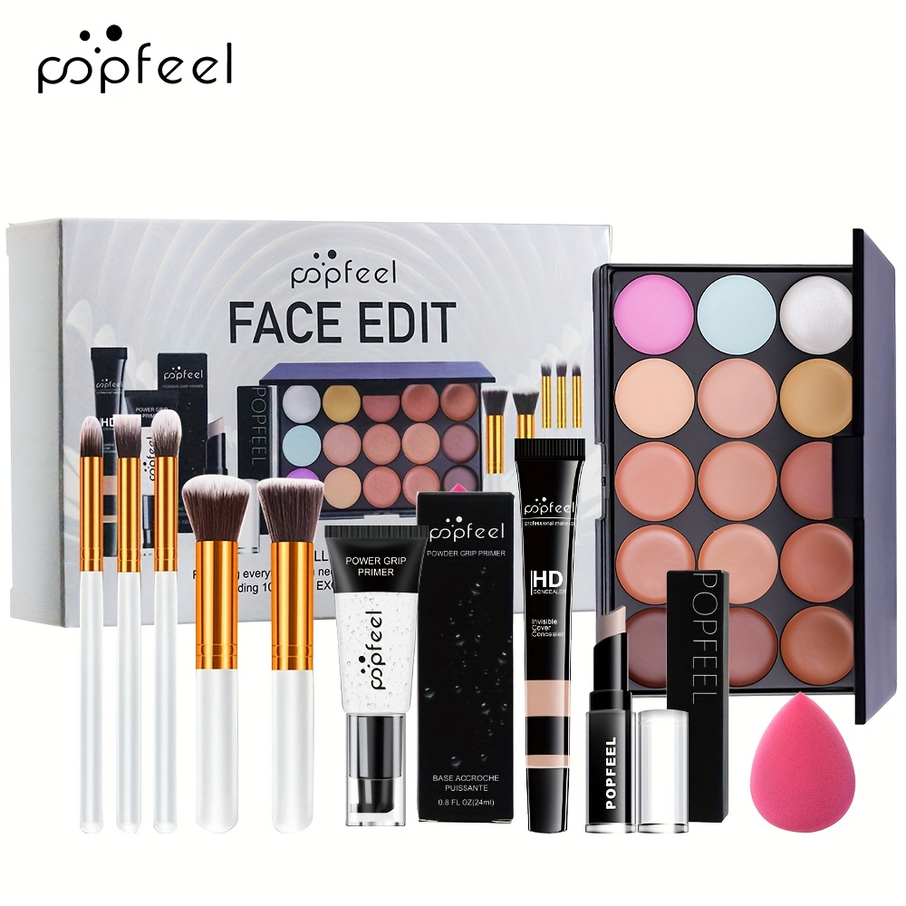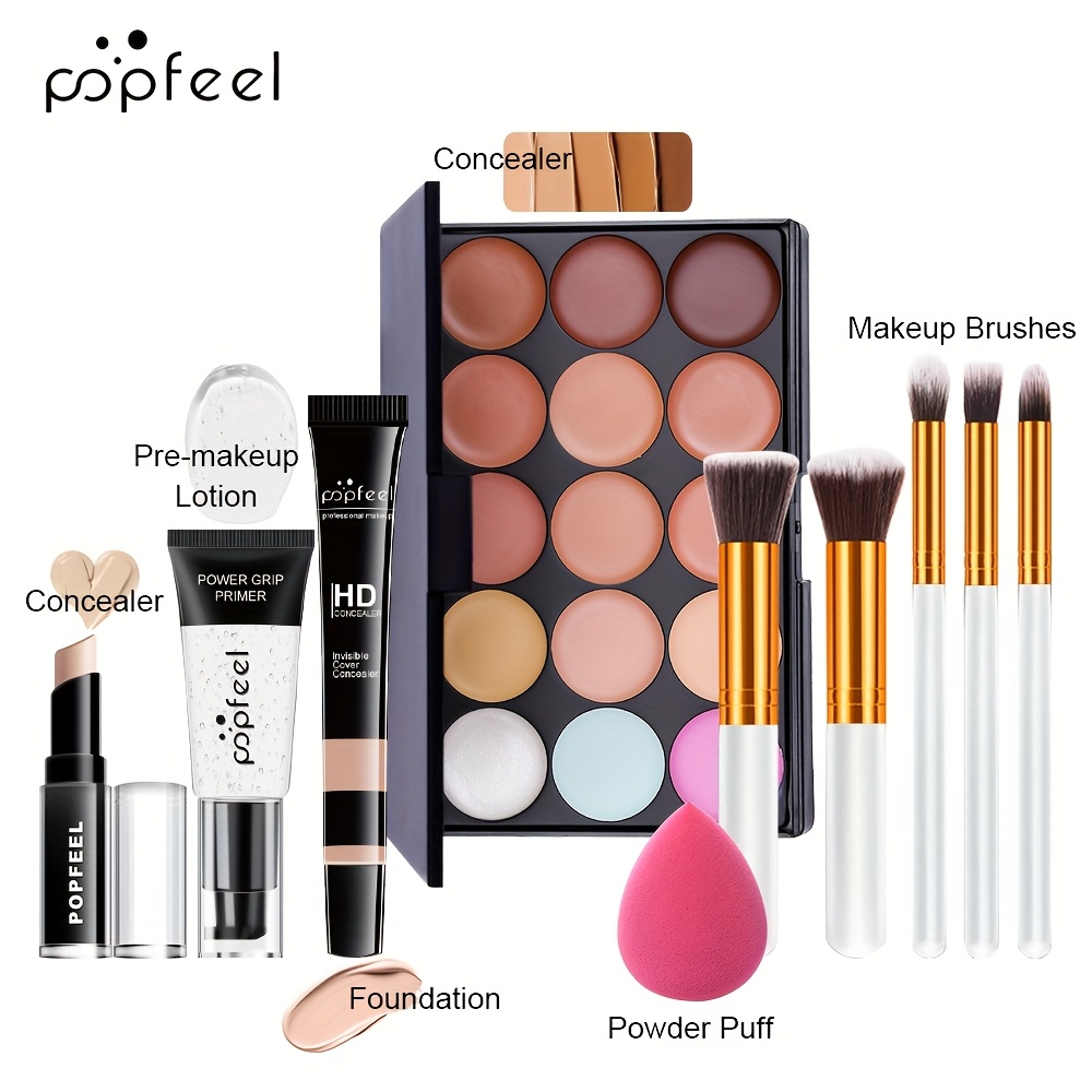 POPFEEL Complete Makeup Kit for Beginners, Mixed Color System, Paste Form, Includes Concealer, Foundation, Primer, and Application Tools Set, Pop Feel Makeup Kit, POPFEEL
