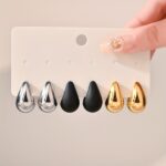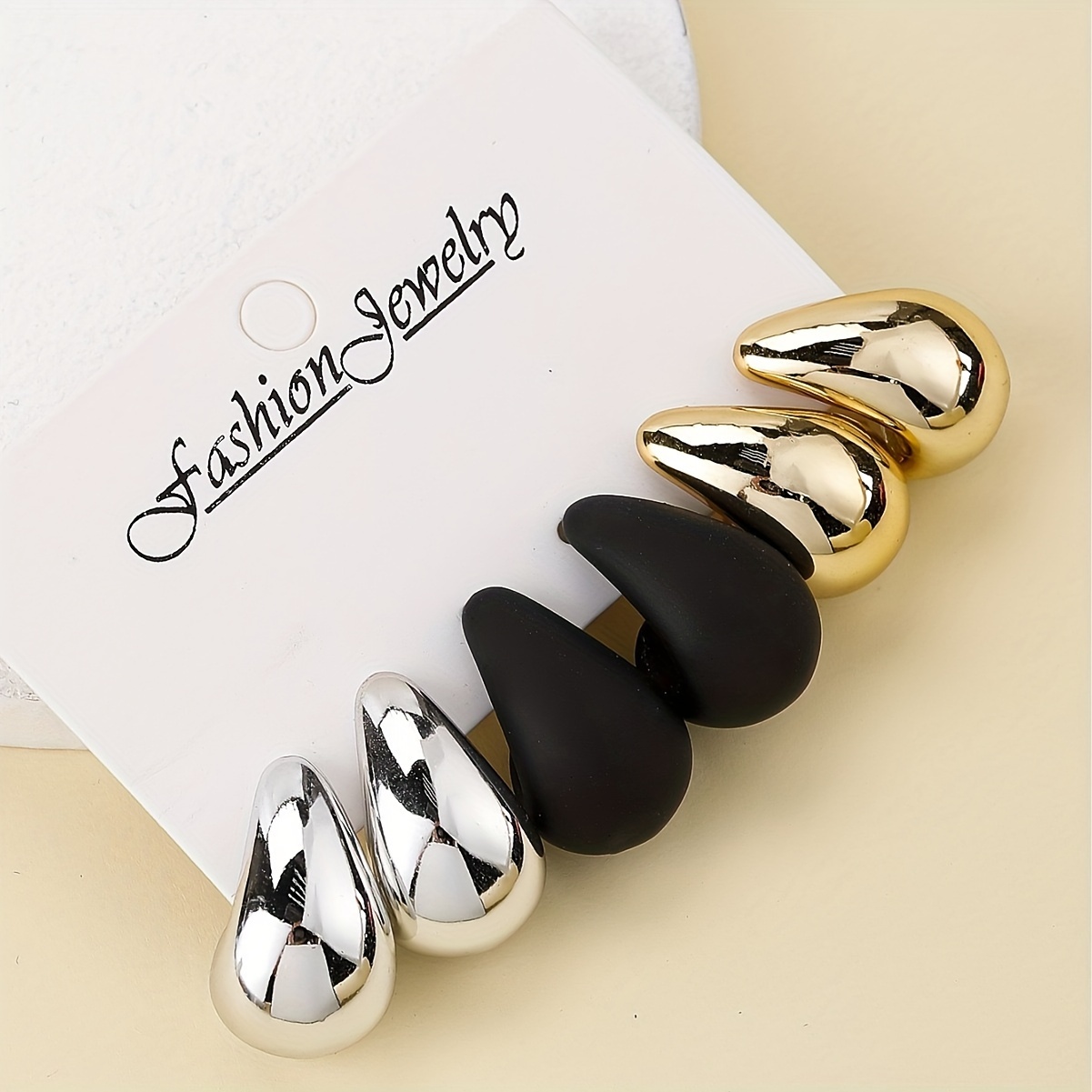 [Popular Choice] 3 Pairs of Fashionable and Popular European and American Golden, Black and Silvery Classic and Fashionable Water Drop Style Women’s Earrings Set