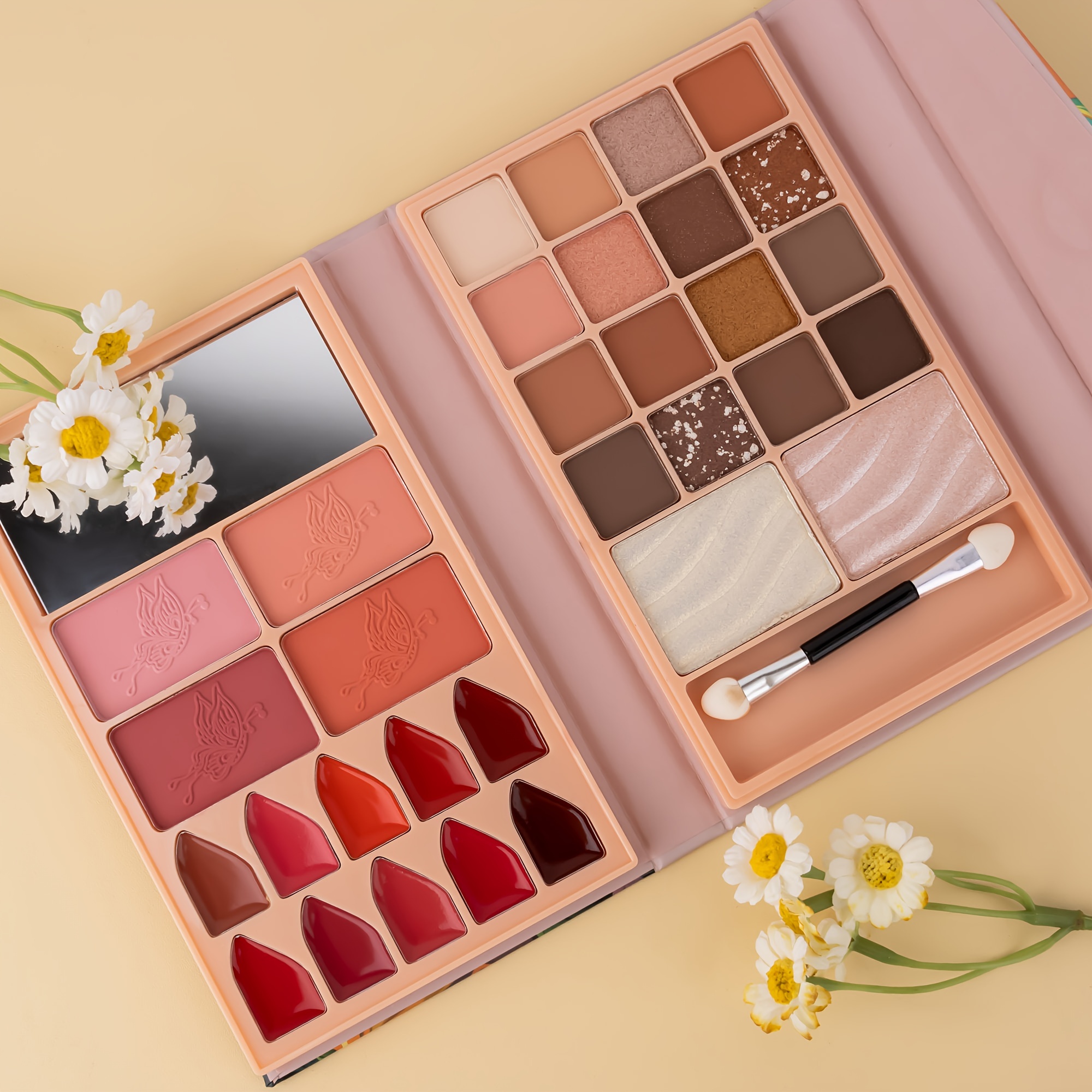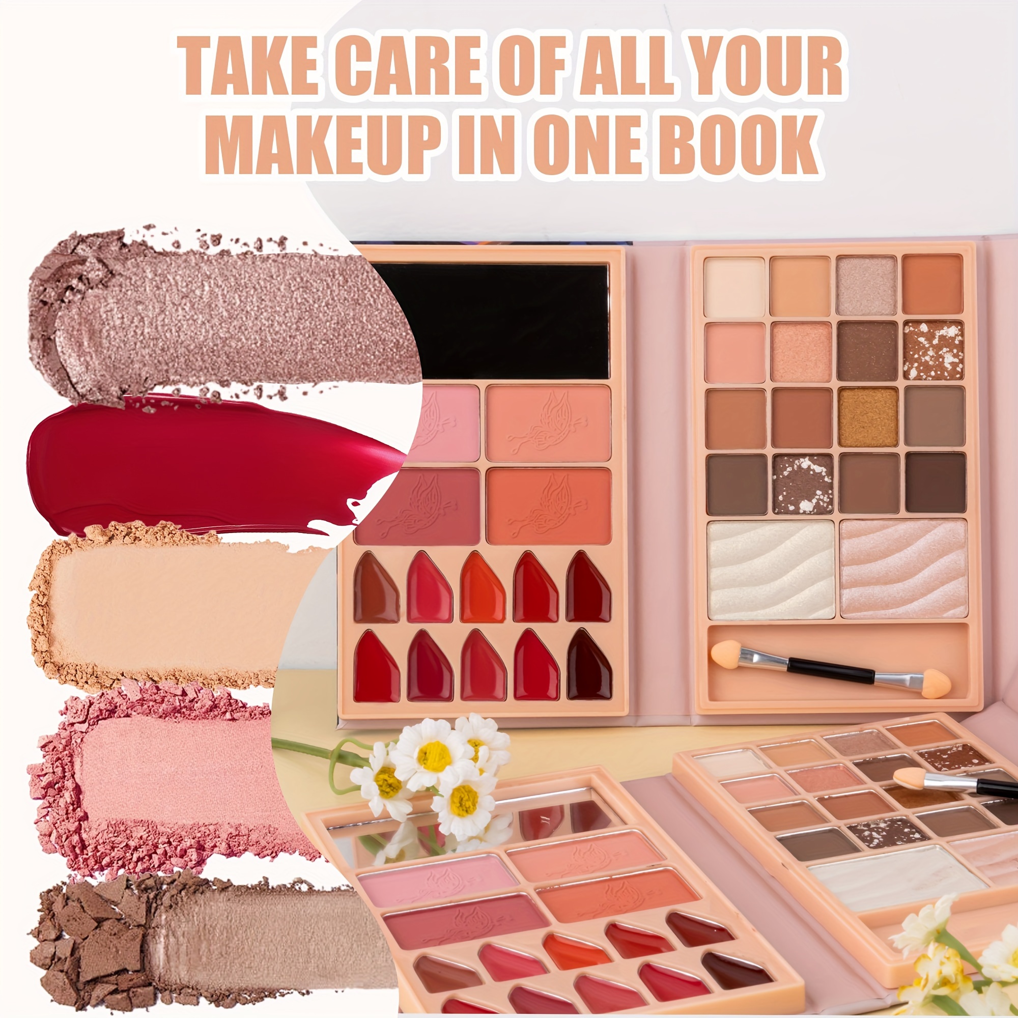 Portable Makeup Book Palette, Mixed Color System, Paste Item Form, with Blush, Eyeshadow, Lipstick, High-Gloss Compact Cosmetic Kit