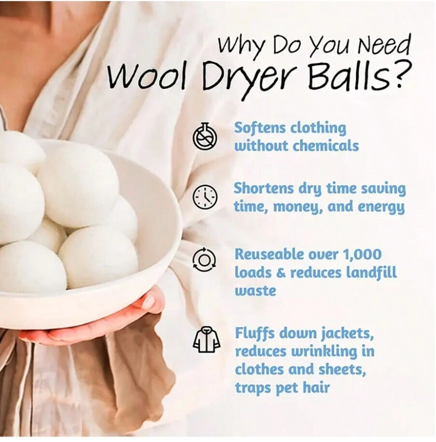 Premium Natural Wool Dryer Balls – Replace Dryer Sheets & Fabric Softener – Laundry Balls For Dryer Anti-static Wrinkle Removal Wool Ball