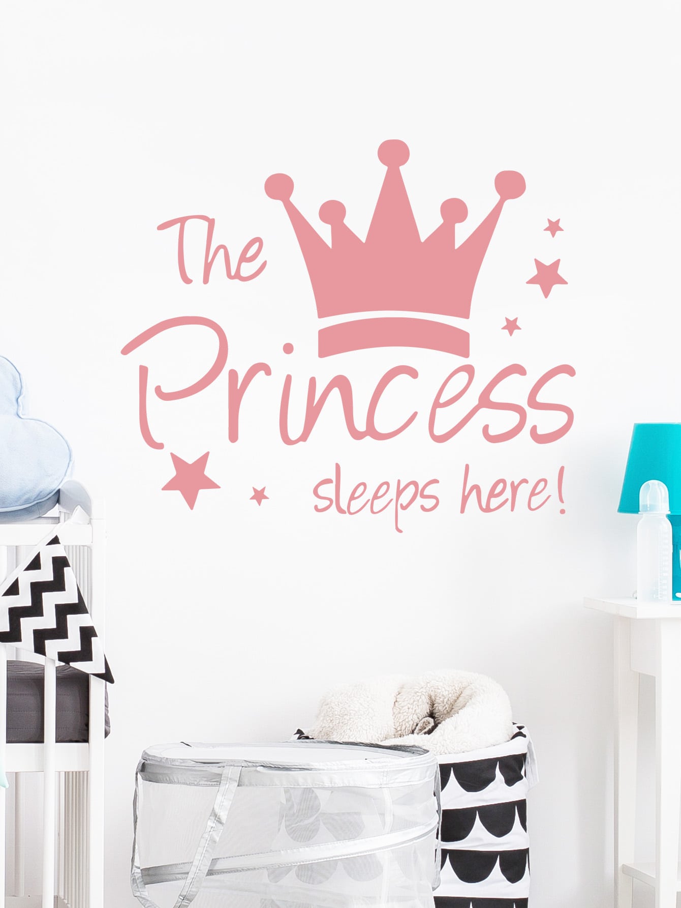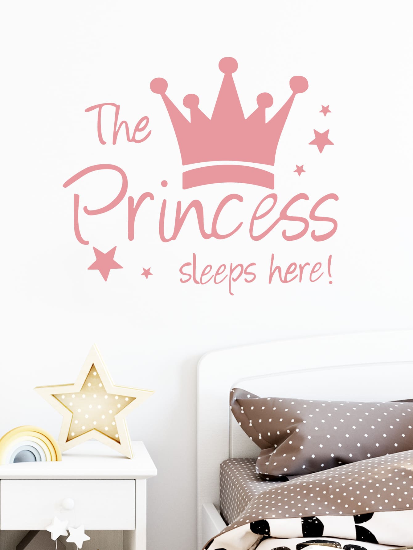 PVC Crown Print Wall Sticker,Cute Pink Princess Pattern Waterproof Wall Decal For Kids