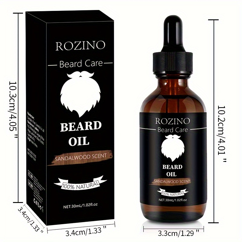 ROZINO Beard Care Oil, 30ml – Deep Moisturizing & Refreshing, Non-Greasy Formula for Messy, Dry Beards | Plant-Based Essence, Hypoallergenic, Gentle on Skin