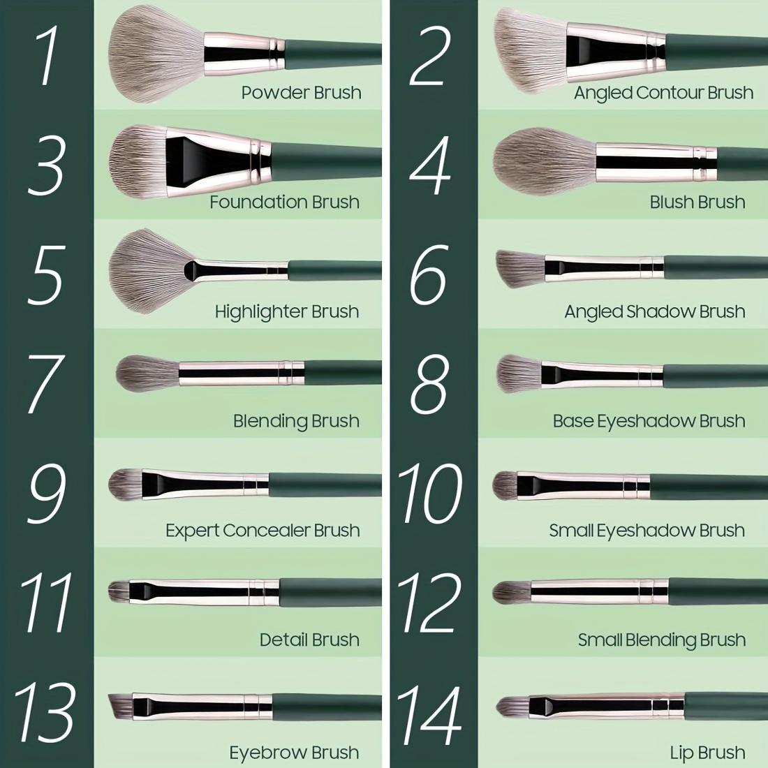 Set of Professional Makeup Brushes Including a