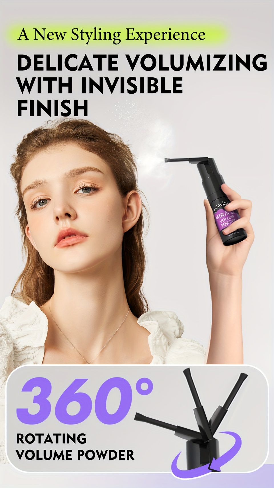 SEVICH Miracle Volumizing Hair Powder – 360 ° Rotating, No-Rinse Styling Spray for Men & Women, Oil Control & Fluffy Hair Volume Boost, Suitable for All Hair Types
