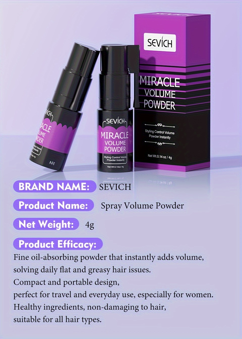 Be the first to review “SEVICH Miracle Volumizing Hair Powder – 360 ° Rotating, No-Rinse Styling Spray for Men & Women, Oil Control & Fluffy Hair Volume Boost, Suitable for All Hair Types” Cancel reply