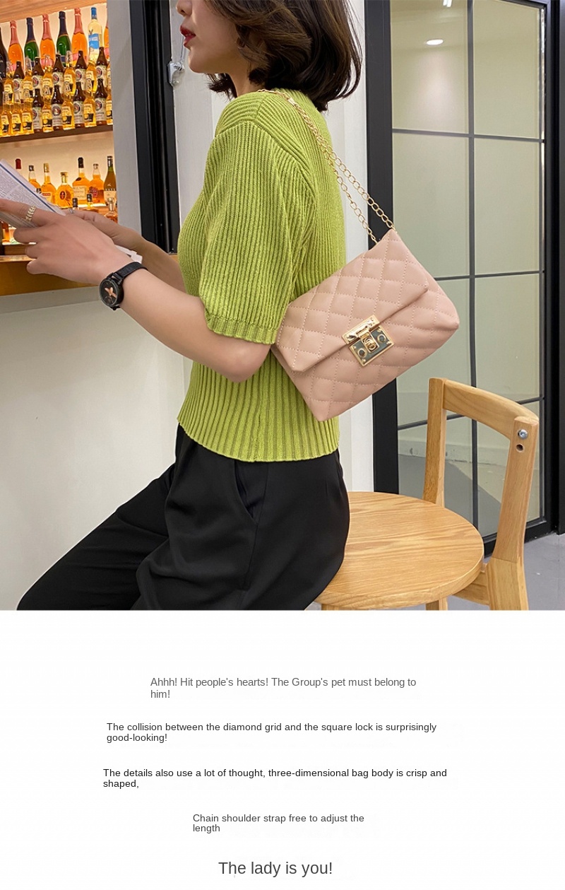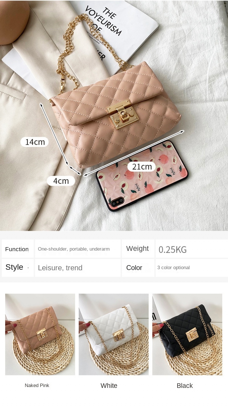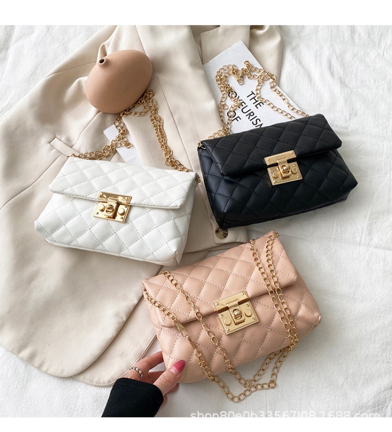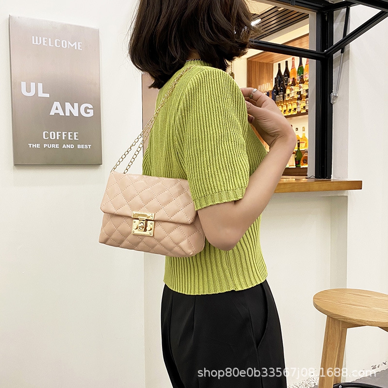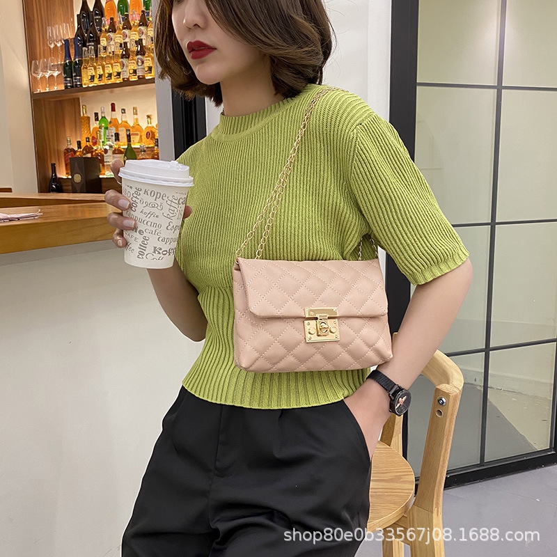Square Women’S Chain Shoulder Bag Metal Buckle Lock Bag Soft Women’S Crossbody Bag Korean Fashion Women’S Handbag