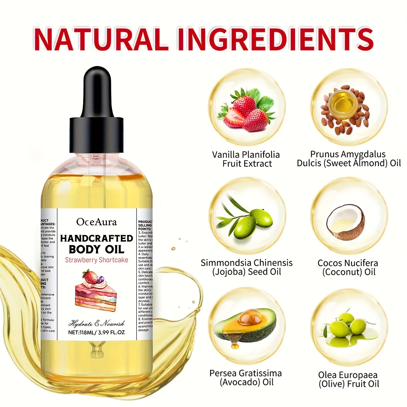 Strawberry Bliss Body Oil – 105ml | Hydrating & Softening with Coconut, Olive & Glycerin | Fragrance-Free for Sensitive Skin