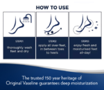 - – VASELINE® FOOT CREAM is nourishing and soothing, making it the perfect solution for dry cracked heels- HEALING POWER – Made with the healing power of Vaseline Jelly®, it helps to lock in an extra layer of hydration and offers rich moisturization- FAST ABSORBENCY: This foot cream is suitable for daily day and night use as its formula is fast-absorbing, non-greasy and non-sticky, leaving your feet and heels moisturized with a velvet-feel.- USE AS FOOT MASK: You can also use it as a foot mask – after washing and drying feet, apply a generous layer of Vaseline Deep Moisture Foot Cream. Wear a pair of socks over your feet all night to lock in moisture. – MADE IN KOREA: This lip stick balm is made with Vaseline Jelly®