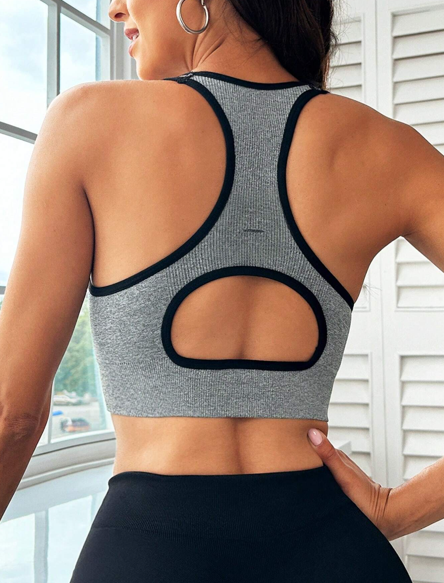 Women’S Sports Vests, Slim Stretch Vests, Yoga Clothes Contrast Binding Cut Out Back Sports Bra