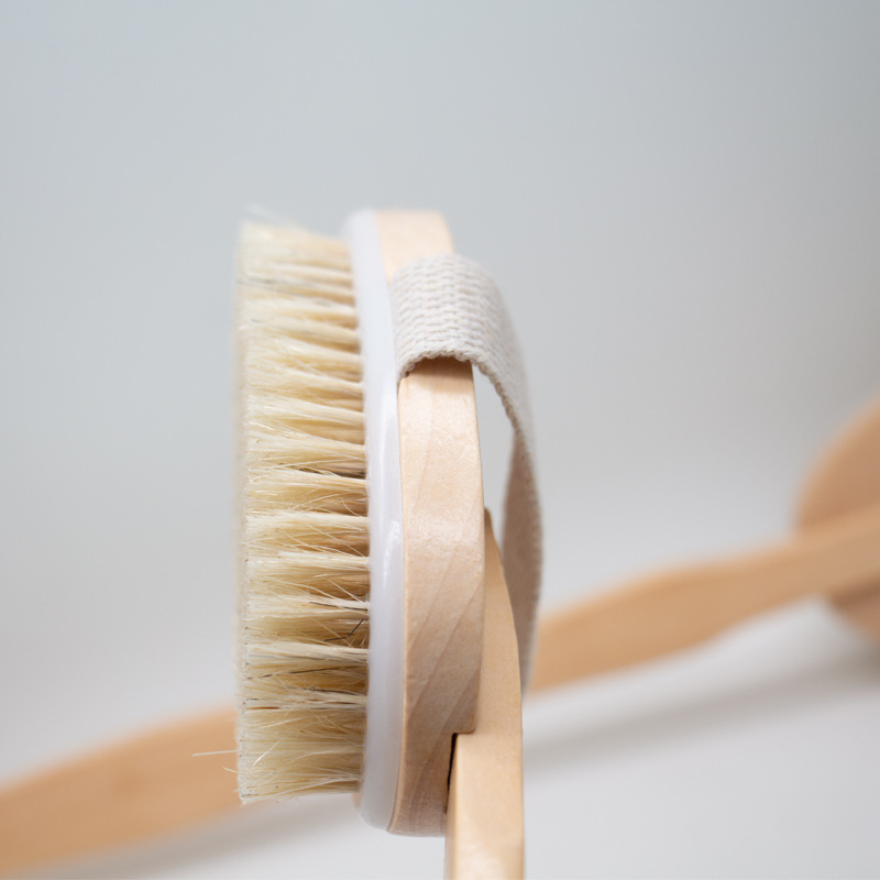 Wooden Handle Bath Brush, Bathing Pig Hair Brush, Long Handle Wooden Back Scrubber, Bath Towel, Detachable Dual-Use Soft Hair Massage Bath Brush