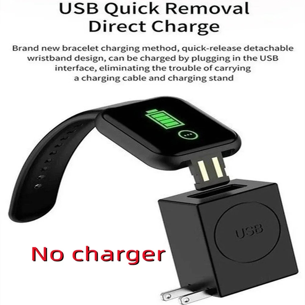 Package Contents: 1 x Smart Watch, 1 x Manual, 1 x box (Note:No Charger. The box may be damaged after long transportation, but the watch is fine, please understand.Dear buyers, this watch does not require a charging cable, it can be charged directly through the charging head or USB interface.)
