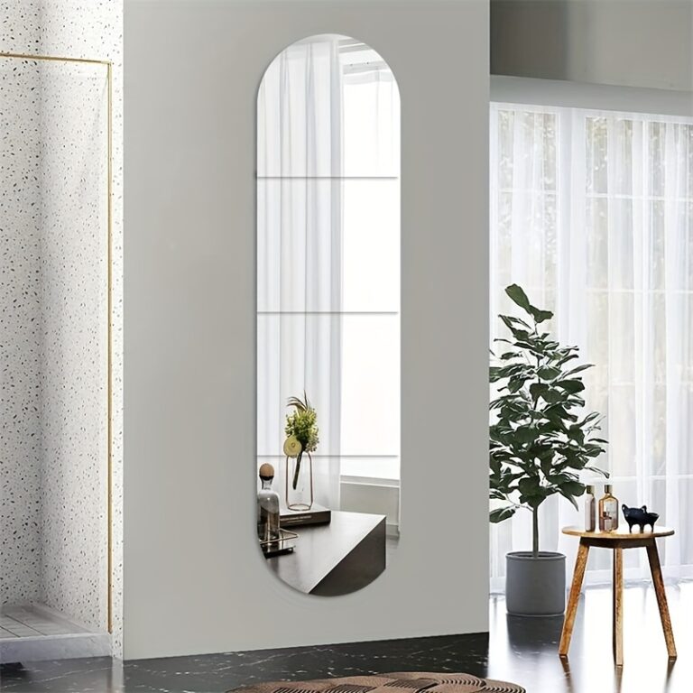 4pcs Set 3D Acrylic Mirror Wall Decals – Square & Semi-Circle, Waterproof & Shatterproof, Self-Adhesive for Bedroom, Living Room, Office, Kitchen, Bathroom, Dance Studio, Gym – DIY Home Decor